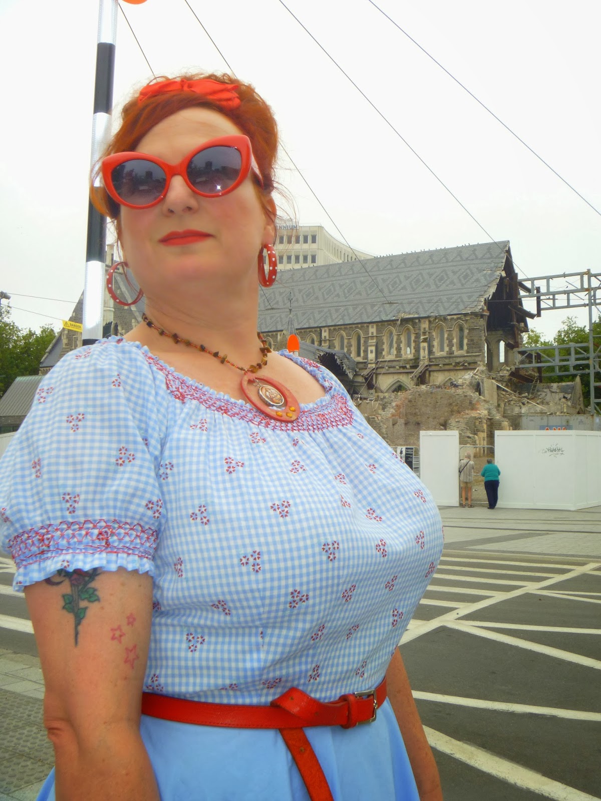 aww...such a sweet date post. I want to come and eat tacos with your guys! I love your square dancing frock and yes the cathedral does get people rather hot under the collar, outside of Chch as well. I rather like the look of ruined buildings myself, perhaps just turn it into a big central city garden? But then, what do I know right ;)